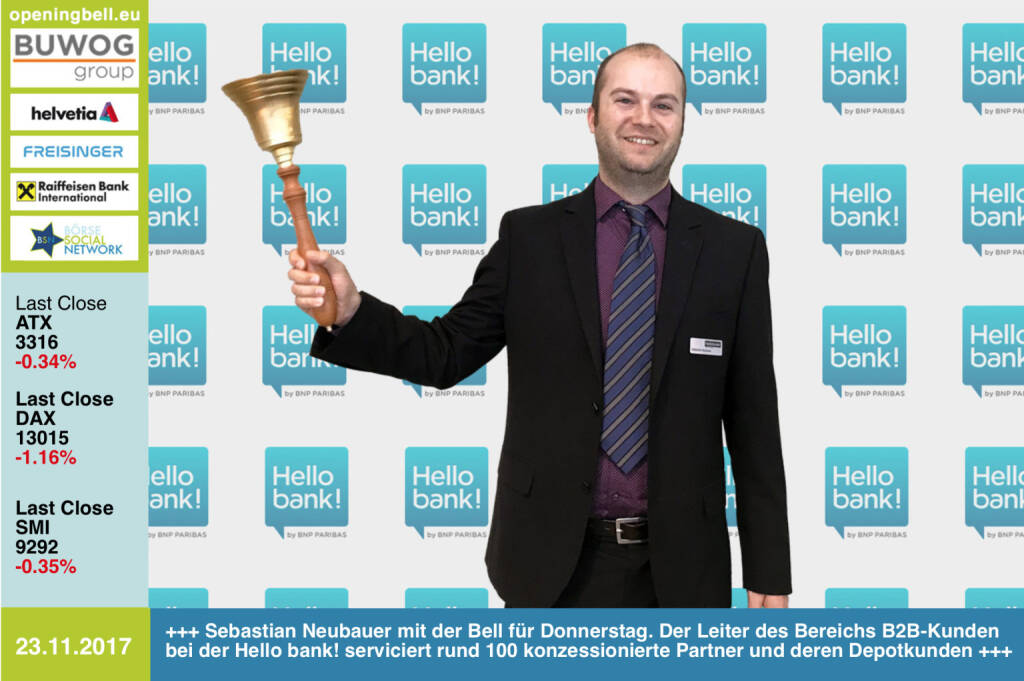 16.5.: Walter Larionows läutet die Opening Bell für Donnerstag. Als Head of Sales & Customer Relations der Hello bank! lädt er heute/morgen zum grossen B2B-Kongress seines Hauses http://www.hellobank.at https://www.facebook.com/groups/GeldanlageNetwork