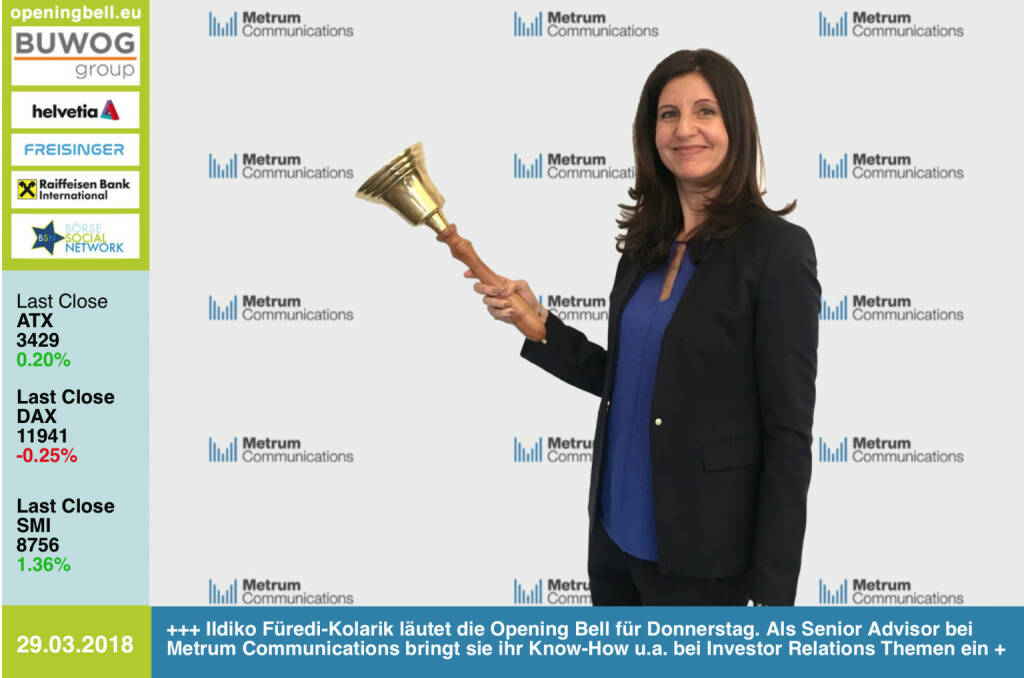 25.3.: Eva Ruppnig mit der Opening Bell für Montag. Die Kommunikations-Expertin bei Metrum Communications betreut unter anderem den Börseneuling Marinomed Biotech AG http://www.metrum.at https://www.facebook.com/groups/GeldanlageNetwork