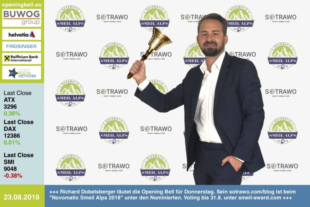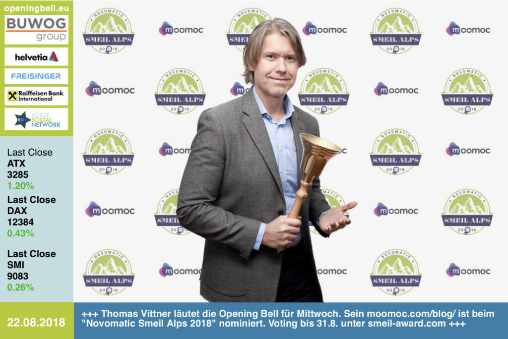 2.7.: Tim Schäfer läutet die Opening Bell für Dienstag. In Kürze startet der Novomatic Smeil Alps 2019 und http://timschaefermedia.com ist natürlich bei diesem Finanzbloggeraward als Nominee gesetzt http://www.smeil-award.com https://www.facebook.com/groups/GeldanlageNetwork Blog zum Treffen in Wien: http://bit.ly/2XlJReW