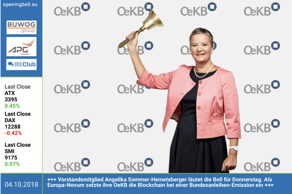 #openingbell am 9.2: Barbara Bogner, Corporate Communications in der OeKB, mit der Bell für Dienstag. Am 6.5. wird es im hauseigenen Reitersaal einen ganz speziellen BSN-Börsetag geben http://www.oekb.at http://www.openingbell.eu