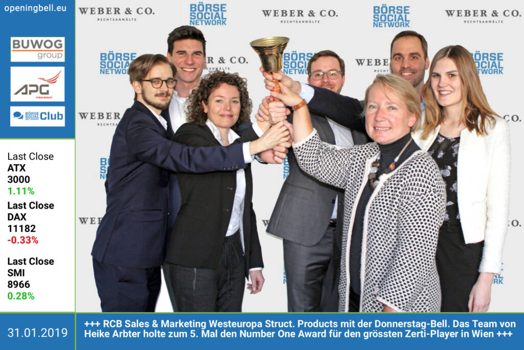 #openingbell am 28.1: Neo-RCB-Vorstand Valerie Brunner mit der Opening Bell für einen erfolgreichen Zertifikate-Handelstag. BSN/Deloitte ehrten die RCB eben mit dem Number One Award in dieser Kategorie http://www.rcb.at