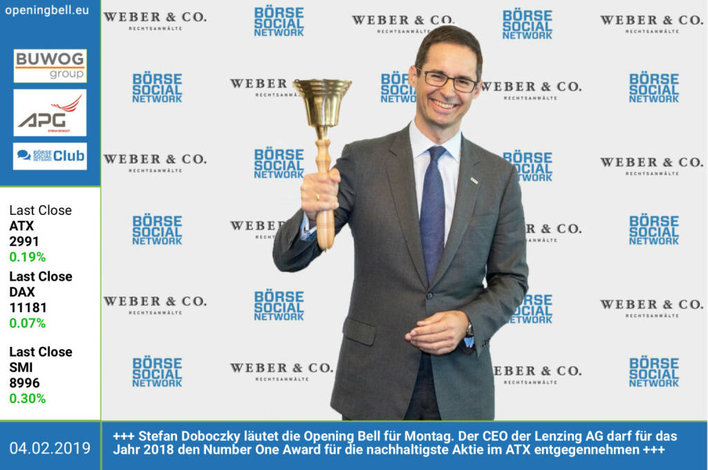 15.3.: Stefan Doboczky läutet die Opening Bell für Freitag. Der Lenzing-CEO nahm den Number One Award 2018 entgegen: Bestes Nachhaltigkeitsranking im ATXPrime (auf Basis der VÖNIX-Kritierien) https://boerse-social.com/numberone/2018 https://www.lenzing.com http://www.voenix.at/ http://weber.co.at https://www.facebook.com/groups/GeldanlageNetwork