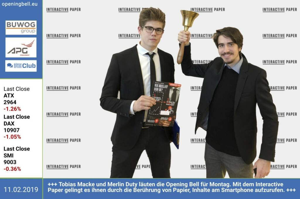 26.2.: Lukas Scherzenlehner läutet die Opening Bell für Dienstag. Am 18.März gibt er bei der Börse Social Network Roadshow #76 in Wien ein Update zu seiner seit 2017 gelisteten Cleen Energy http://www.cleen-energy.com https://www.facebook.com/groups/GeldanlageNetwork