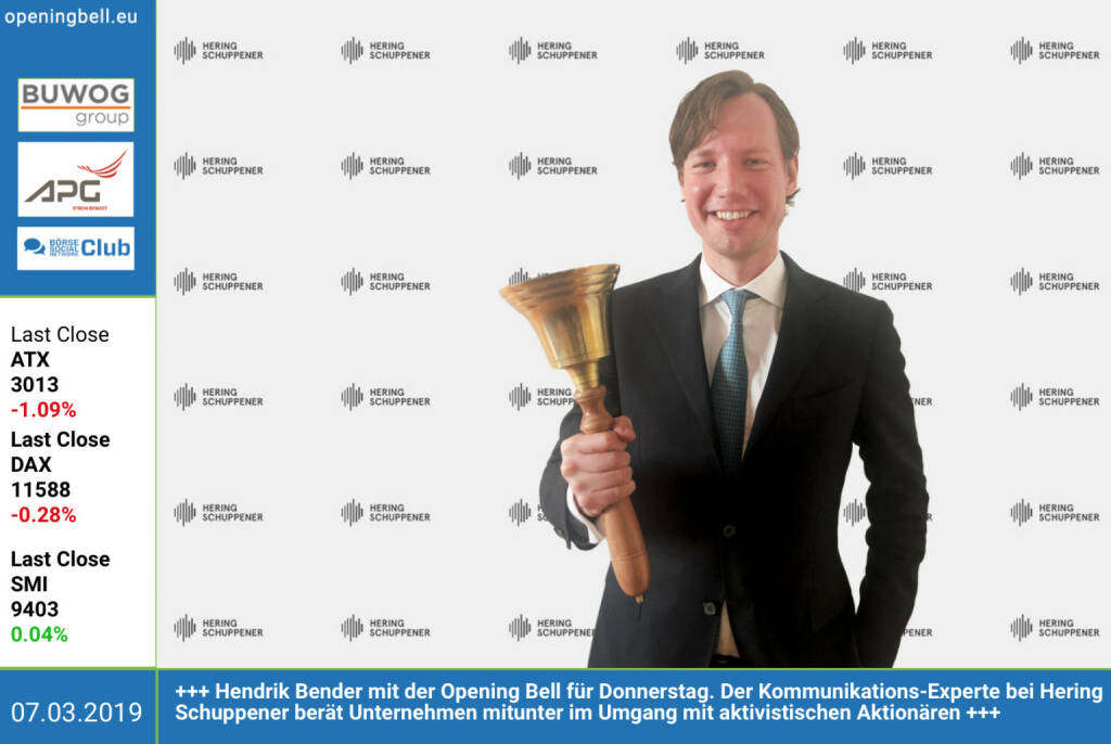 7.3.: Hendrik Bender mit der Opening Bell für Donnerstag. Der Kommunikations-Experte bei Hering Schuppener berät Unternehmen mitunter im Umgang mit aktivistischen Aktionären http://www.heringschuppener.com
