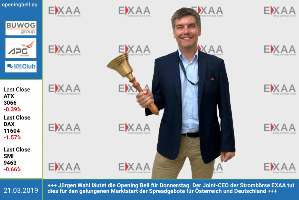 21.3.: Jürgen Wahl läutet die Opening Bell für Donnerstag. Der Joint-CEO der Strombörse EXAA tut dies für den gelungenen Marktstart der Spreadgebote für Österreich und Deutschland https://www.exaa.at/de https://www.facebook.com/groups/GeldanlageNetwork