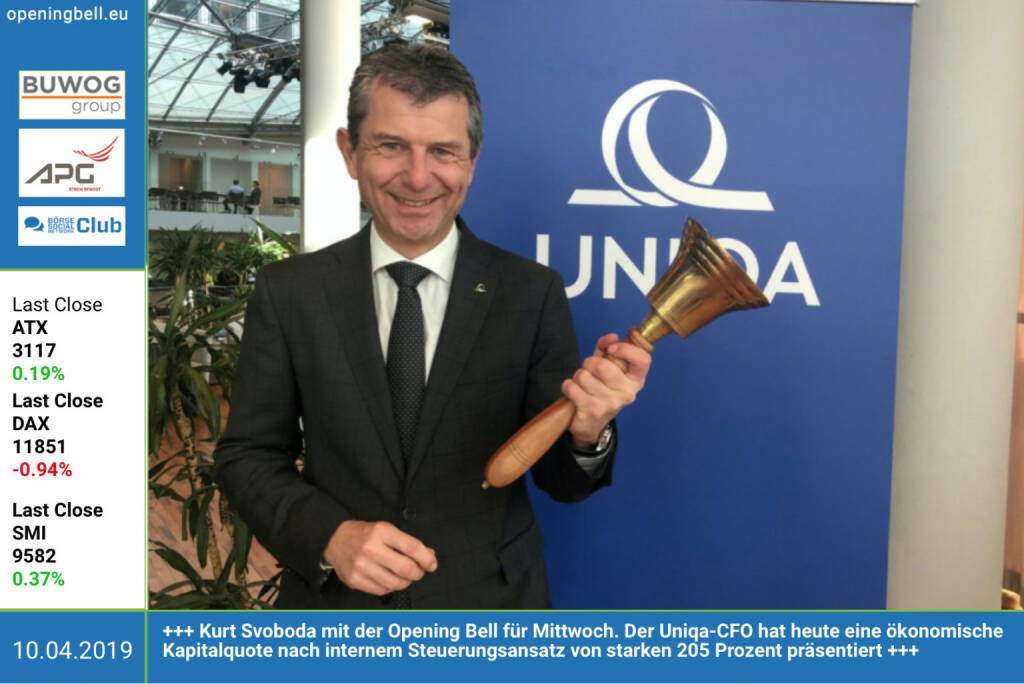 10.4.: Kurt Svoboda mit der Opening Bell für Mittwoch. Der Uniqa-CFO hat heute eine ökonomische Kapitalquote nach internem Steuerungsansatz von starken 205 Prozent präsentiert. http://uniqagroup.com https://www.facebook.com/groups/GeldanlageNetwork