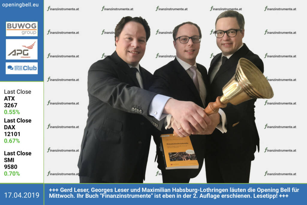 Gerd Leser, Georges Leser und Maximilian Habsburg-Lothringen läuten die Opening Bell für Mittwoch. Ihr Buch "Finanzinstrumente" ist eben in der 2. Auflage erschienen. Lesetipp! http://www.finanzinstrumente.at https://www.facebook.com/groups/GeldanlageNetwork