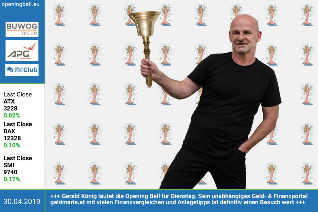 30.4.: Gerald König läutet die Opening Bell für Dienstag. Sein unabhängiges Geld- & Finanzportal http://www.geldmarie.at mit vielen Finanzvergleichen und Anlagetipps ist definitiv einen Besuch wert https://www.facebook.com/groups/GeldanlageNetwork