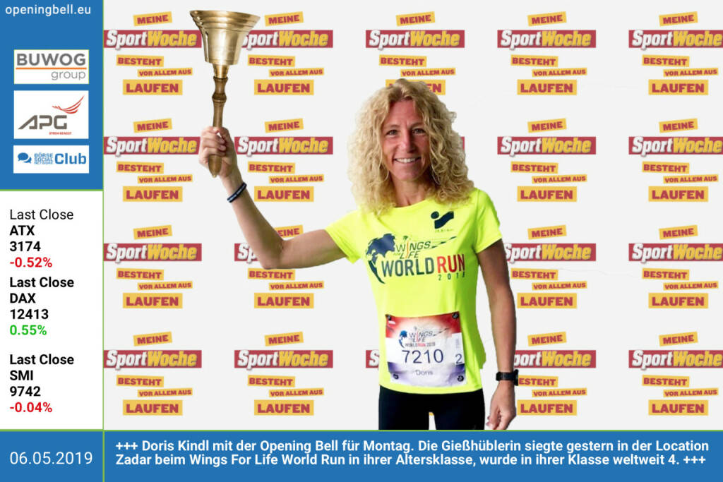 6.5.: Doris Kindl läutet die Opening Bell für Montag. Die Gießhüblerin gewann gestern in der Location Zadar beim Wings For Life World Run ihre Altersklasse, wurde in ihrer Altersklasse weltweit 4. https://live.wingsforlifeworldrun.com/global-data https://www.facebook.com/search/top/?q=sportsblogged http://www.runplugged.com