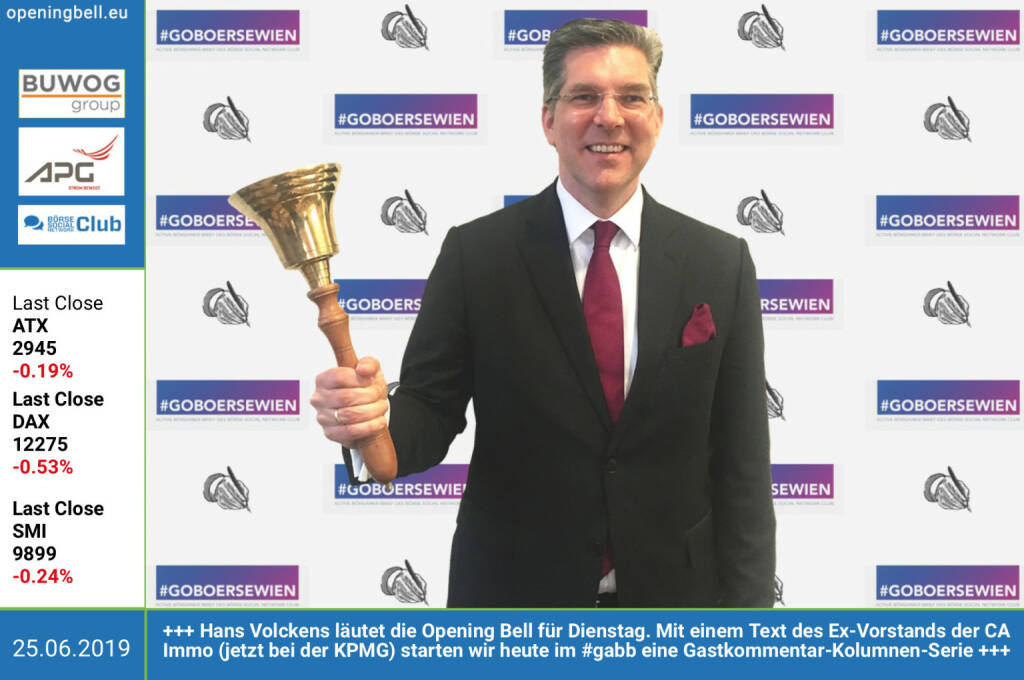 25.6.: Hans Volckens läutet die Opening Bell für Dienstag. Mit einem Text des Ex-Vorstands der CA Immo (jetzt bei der KPMG) starten wir heute im #gabb eine Gastkommentar-Kolumnen-Serie http://www.boerse-social.com/gabb https://www.facebook.com/groups/GeldanlageNetwork
