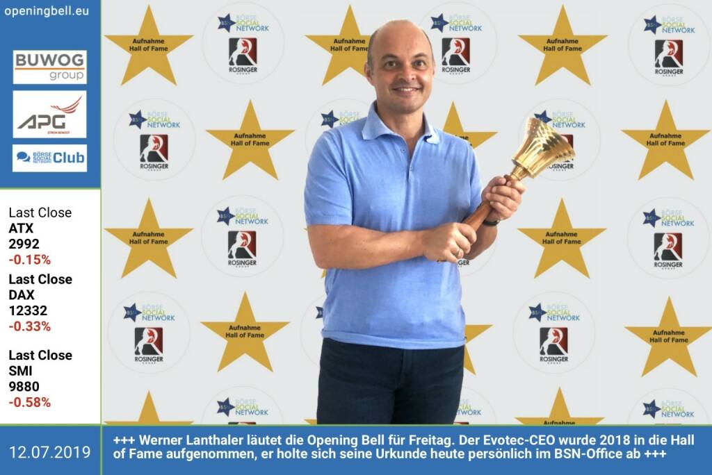 12.7.: Werner Lanthaler läutet die Opening Bell für Freitag. Der Evotec-CEO wurde 2018 in die Hall of Fame aufgenommen, er holte sich seine Urkunde heute persönlich im BSN-Office ab. https://www.evotec.com/de https://www.facebook.com/groups/GeldanlageNetwork