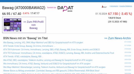 Bawag am 1.10. -3,45%, Volumen 100% normaler Tage