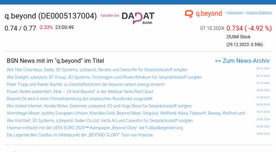 q.beyond am 7.10. -4,92%, Volumen 58% normaler Tage