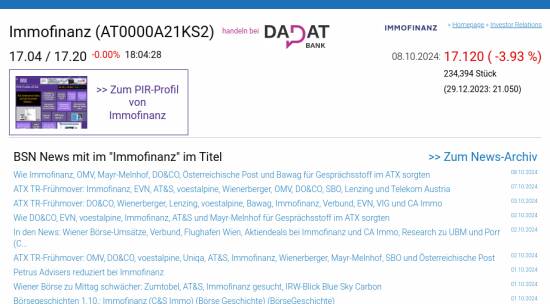 Immofinanz am 8.10. -3,93%, Volumen 42% normaler Tage