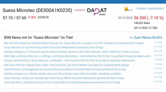 Suess Microtec am 30.10. -7,10%, Volumen 159% normaler Tage