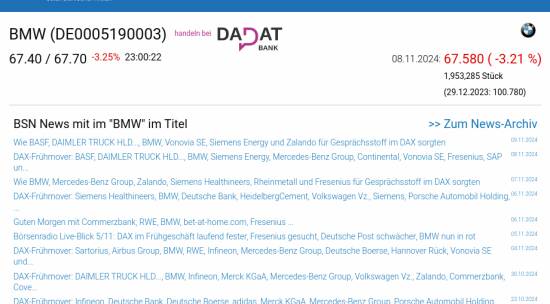 BMW am 8.11. -3,21%, Volumen 181% normaler Tage