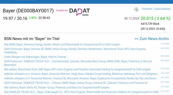 Bayer am 6.12. 2,64%, Volumen 121% normaler Tage