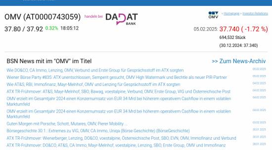 OMV am 5.2. -1,72%, Volumen 185% normaler Tage