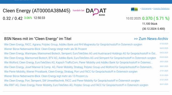 Cleen Energy am 10.2. 5,71%, Volumen 221% normaler Tage