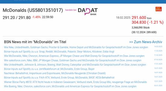 McDonalds am 18.2. -1,21%, Volumen 106% normaler Tage