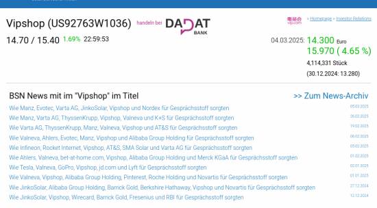 Vipshop am 4.3. 4,65%, Volumen 106% normaler Tage