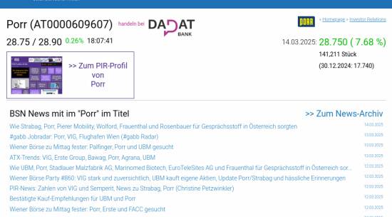 Porr am 14.3. 7,68%, Volumen 256% normaler Tage