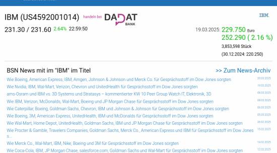 IBM am 19.3. 2,16%, Volumen 82% normaler Tage
