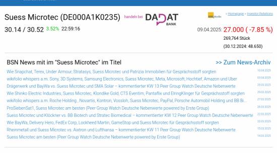 Suess Microtec am 9.4. -7,85%, Volumen 193% normaler Tage