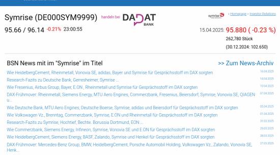 Symrise am 15.4. -0,23%, Volumen 68% normaler Tage