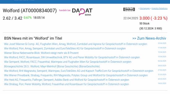 Wolford am 22.4. -3,23%, Volumen 8% normaler Tage