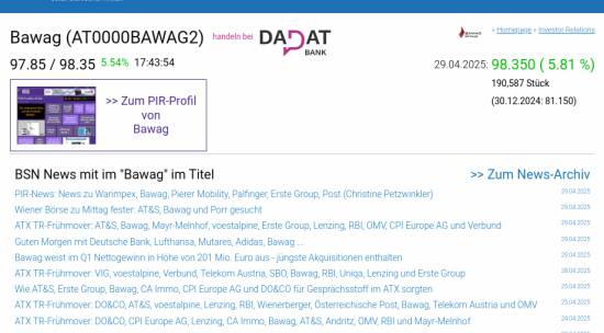 Bawag am 29.4. 5,81%, Volumen 120% normaler Tage