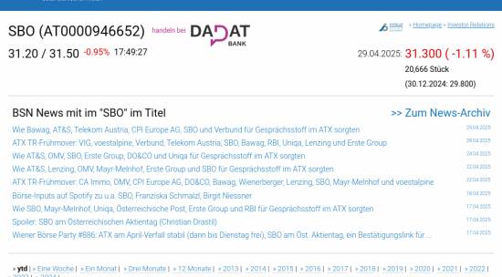 SBO am 29.4. -1,11%, Volumen 58% normaler Tage