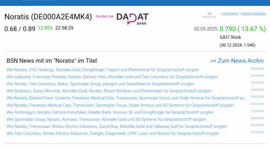 Noratis am 2.5. 13,67%, Volumen 87% normaler Tage