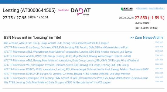 Lenzing am 6.5. -1,59%, Volumen 37% normaler Tage