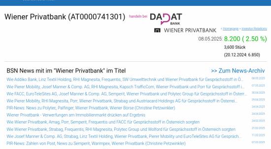 Wiener Privatbank am 8.5. 2,50%, Volumen 127% normaler Tage