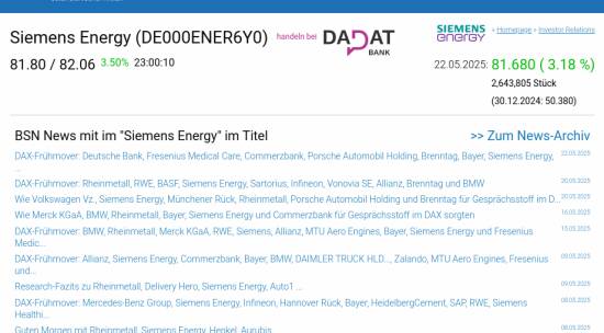 Siemens Energy am 22.5. 3,18%, Volumen 66% normaler Tage