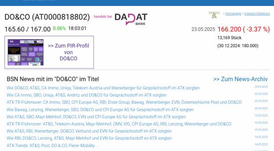 DO&CO am 23.5. -3,37%, Volumen 74% normaler Tage
