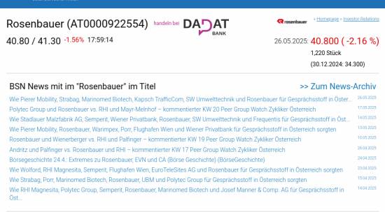 Rosenbauer am 26.5. -2,16%, Volumen 37% normaler Tage