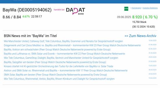 BayWa am 9.6. 6,70%, Volumen 47% normaler Tage