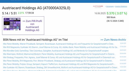 Austriacard Holdings AG am 16.6. 3,07%, Volumen 44% normaler Tage