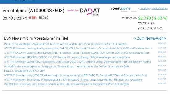 voestalpine am 20.6. 2,62%, Volumen 239% normaler Tage