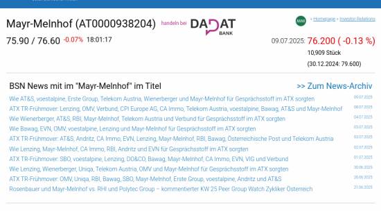 Mayr-Melnhof am 9.7. -0,13%, Volumen 122% normaler Tage