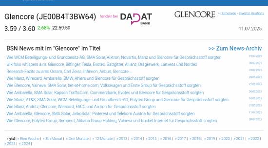Glencore am 11.7. 2,77%, Volumen 0% normaler Tage