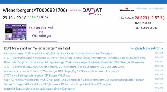 Wienerberger am 16.7. -2,57%, Volumen 70% normaler Tage