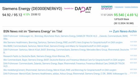 Siemens Energy am 17.7. 4,69%, Volumen 54% normaler Tage