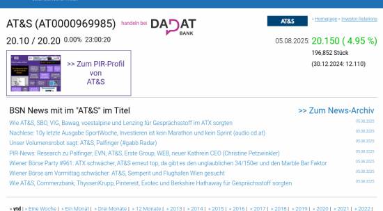 AT&S am 5.8. 4,95%, Volumen 156% normaler Tage