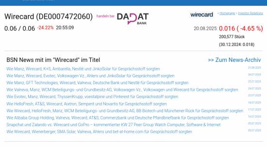 Wirecard am 20.8. -4,65%, Volumen 259% normaler Tage