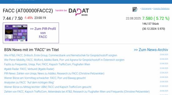 FACC am 22.8. 5,72%, Volumen 448% normaler Tage
