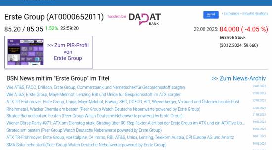 Erste Group am 22.8. -4,05%, Volumen 114% normaler Tage