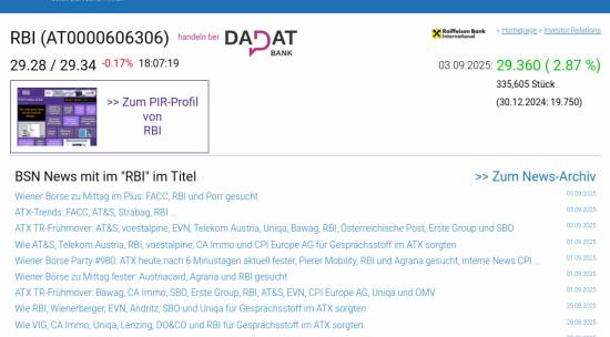 RBI am 3.9. 2,87%, Volumen 83% normaler Tage